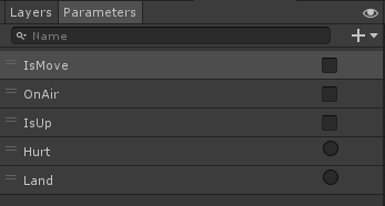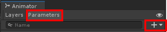 Animator 창에서 Parameters 탭 -> + 버튼을 누르고,