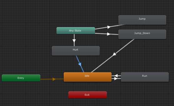 Hurt-> Idle: 조건 없음(애니메이션 종료시 바로 전환)