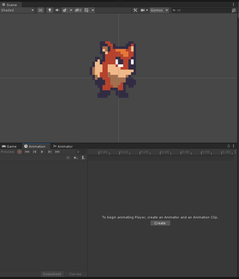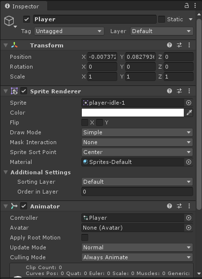 Animator는 Player의 컴포넌트로 자동으로 추가되어있습니다.